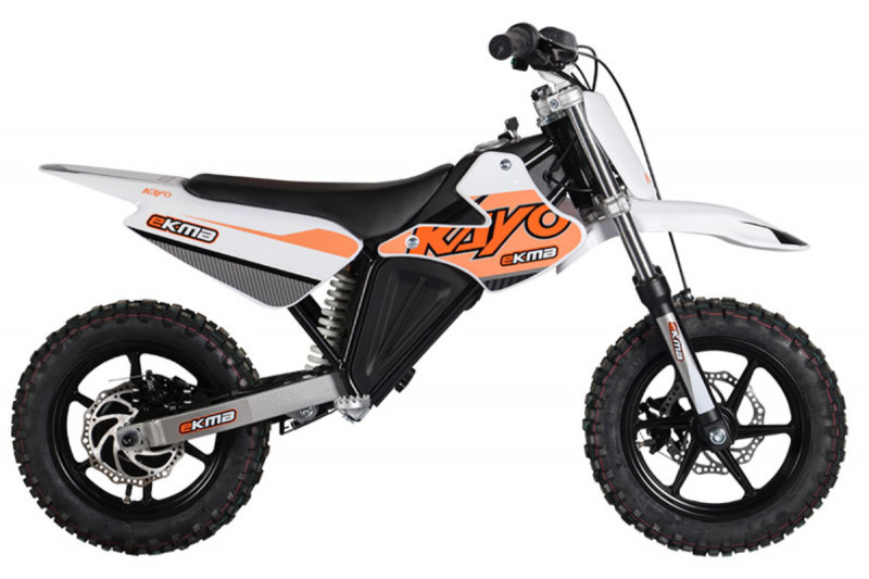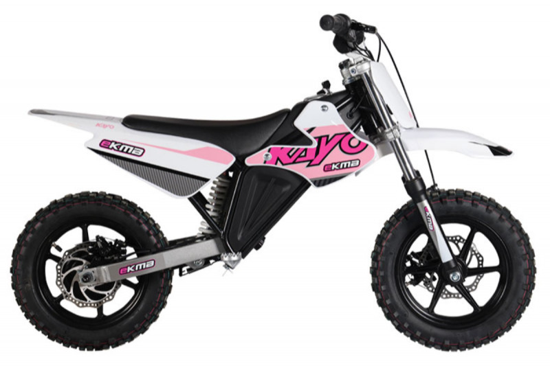 The EKMB was designed to be the ultimate beginner bike aimed at kids who are just starting their two-wheeled journey.  The low seat height of 21.25 inches and light weight design help inspire confidence as they begin to progress.  Speed settings can adjusted on the fly and have a parental lock to make sure they don't advance through the speed settings without the approval of Mom and Dad.  Disc brakes give this bike more than enough stopping power and even limit throttle input while under braking. Each unit comes with three full graphic kits, orange, green, and pink to help customize it.  You can expect run times to last up to 70 minutes, when you are done, just stick it back on the charger and let it recharge.  No more dirty air filters, carb adjustments, and oil changes.  More riding, less maintenance!