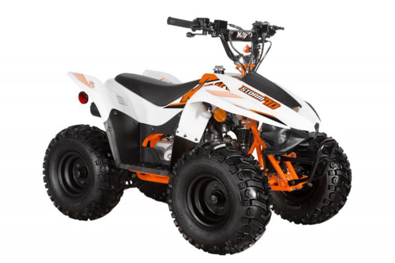Storm 70 is perhaps the best ATV for any child over 6, just getting started. It has an electric starter, an easy manageable 70 cc engine and its fully automatic. Disc brakes front and rear help you to control your speed and stop securely when you need to. The Storm is suspended with appropriate sized riders in mind so you're in for a stable, comfortable ride. The Fox 70 is covered by a 6-month limited warranty.