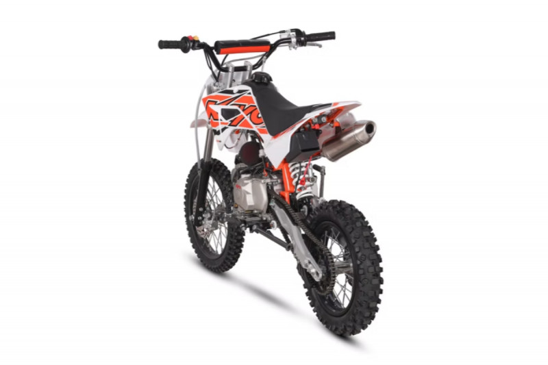 The Budget friendly TSD110 comes standard with hydraulic dampened telescopic front forks , large disc brakes with a semi-automatic 4-speed transmission so you don’t need to worry about clutching. 14 and 12 inch wheels, seat height is 29.1 inches and weighs just 132.5 pounds. Electric and kick start.